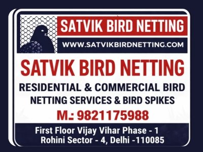 Satvik Bird Netting work as a bird control services provider, manufacturer, wholesaler and trader to bring forth a range of unique and the most environmentally safe bird control solutions. Bird netting and spike installation services are the two best and widely cost effective bird control methods.